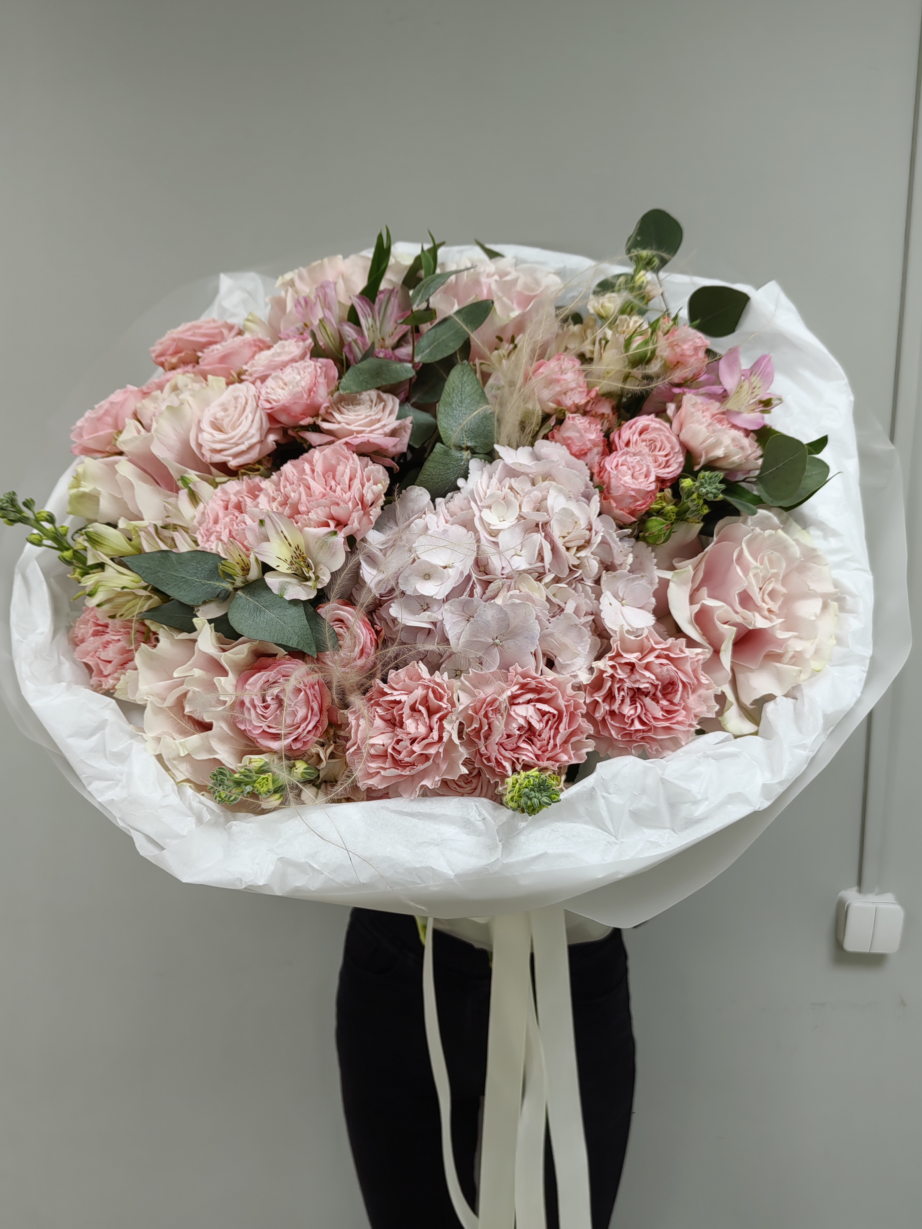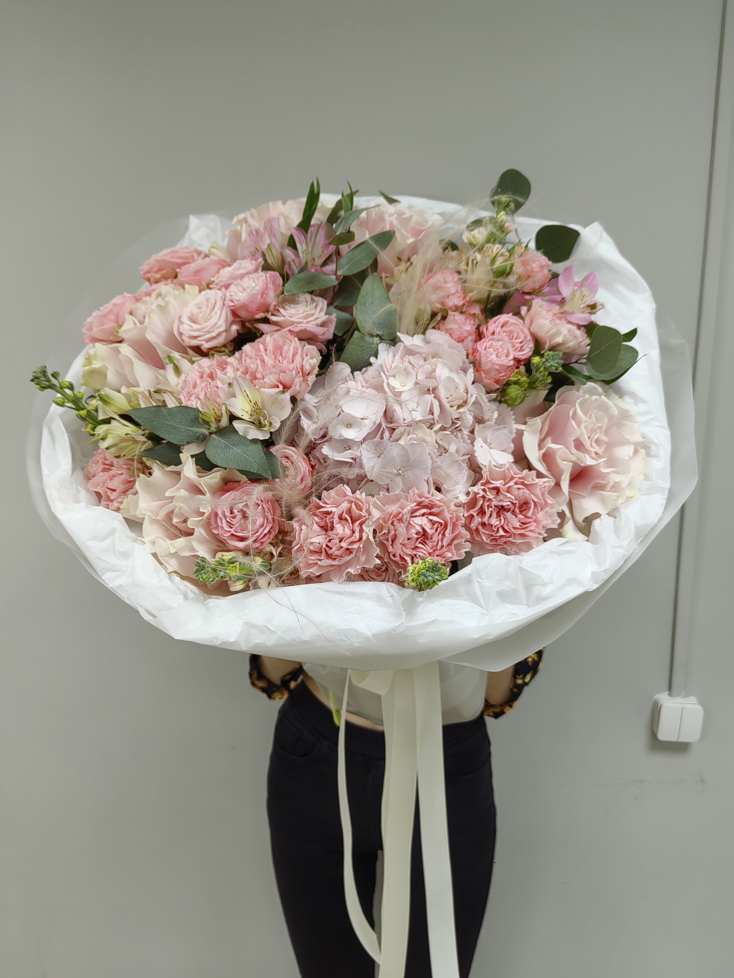 Шикарный букет с пионовидных кустовых роз