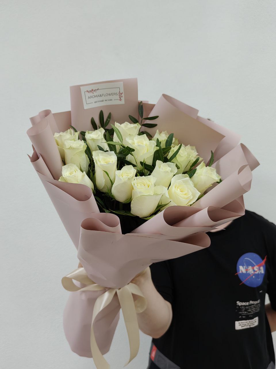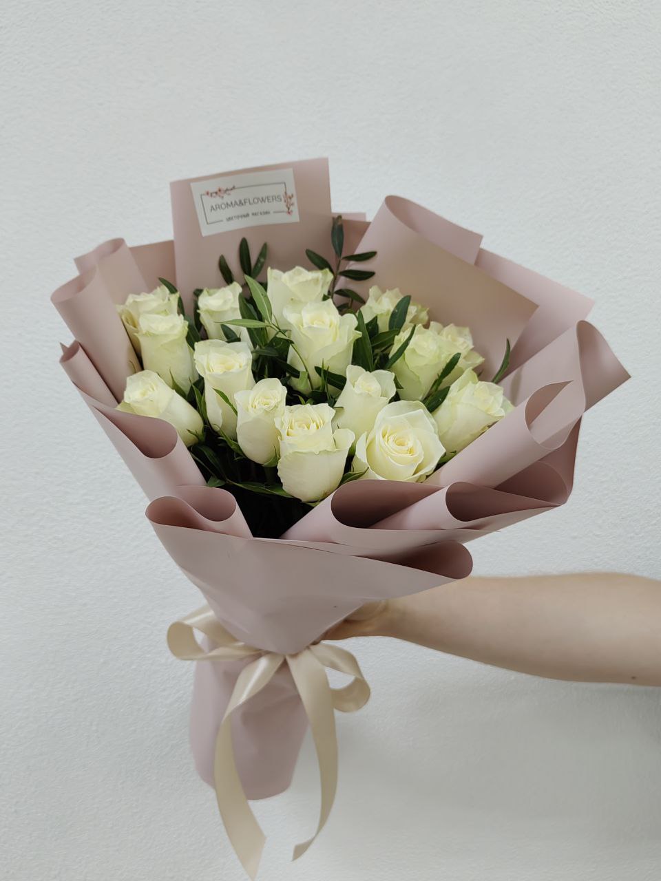 Белые кенийские розы с добавлением зелени