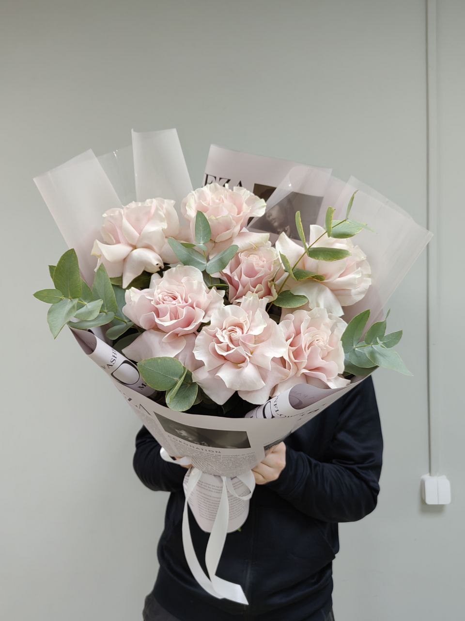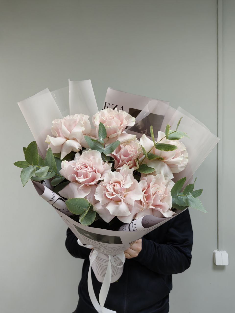 Стильный букет из розовых французских роз,ставший популярным в нашем магазине
